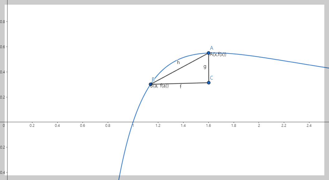 x ≠ a인 인접한 점 A(x, f(x))를 상정합니다. 이때의 할선의 기울기는 앞선 구한 것과 동일하게